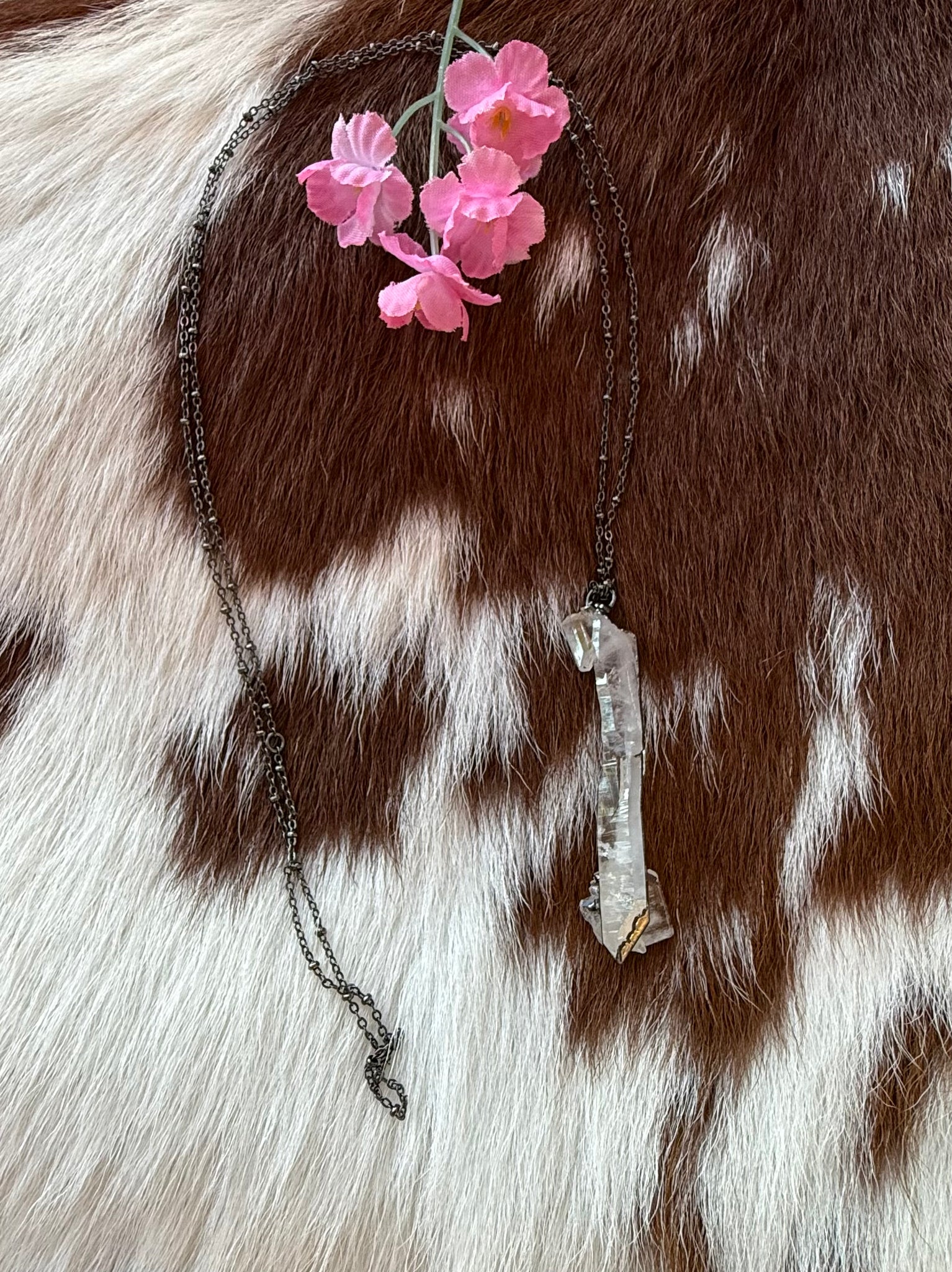 Add a sparkling touch to your style with this playful Sterling Silver Raw Clear Quartz Necklace. Featuring a stunning, natural clear quartz crystal, this long necklace effortlessly blends earthy vibes with elegant shine. Perfect for layering or wearing solo, it brings a fresh, magical energy to any outfit. Let your look shine bright and carefree!